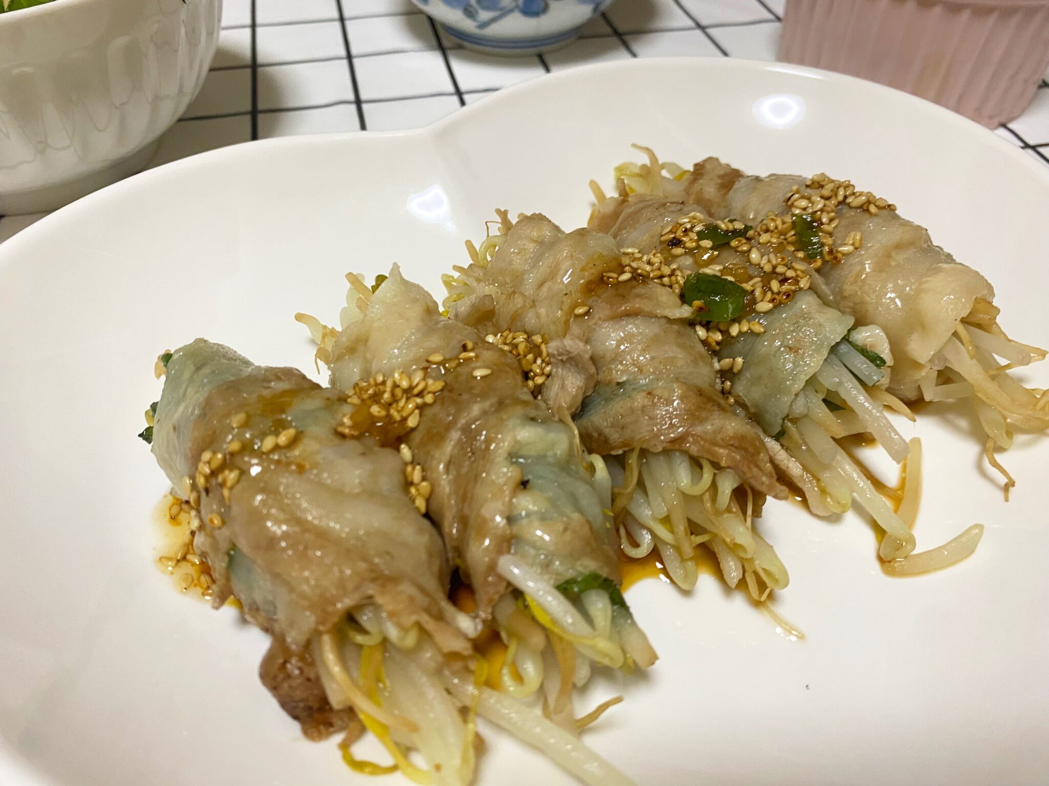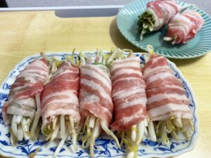 大葉ともやしの豚巻きです